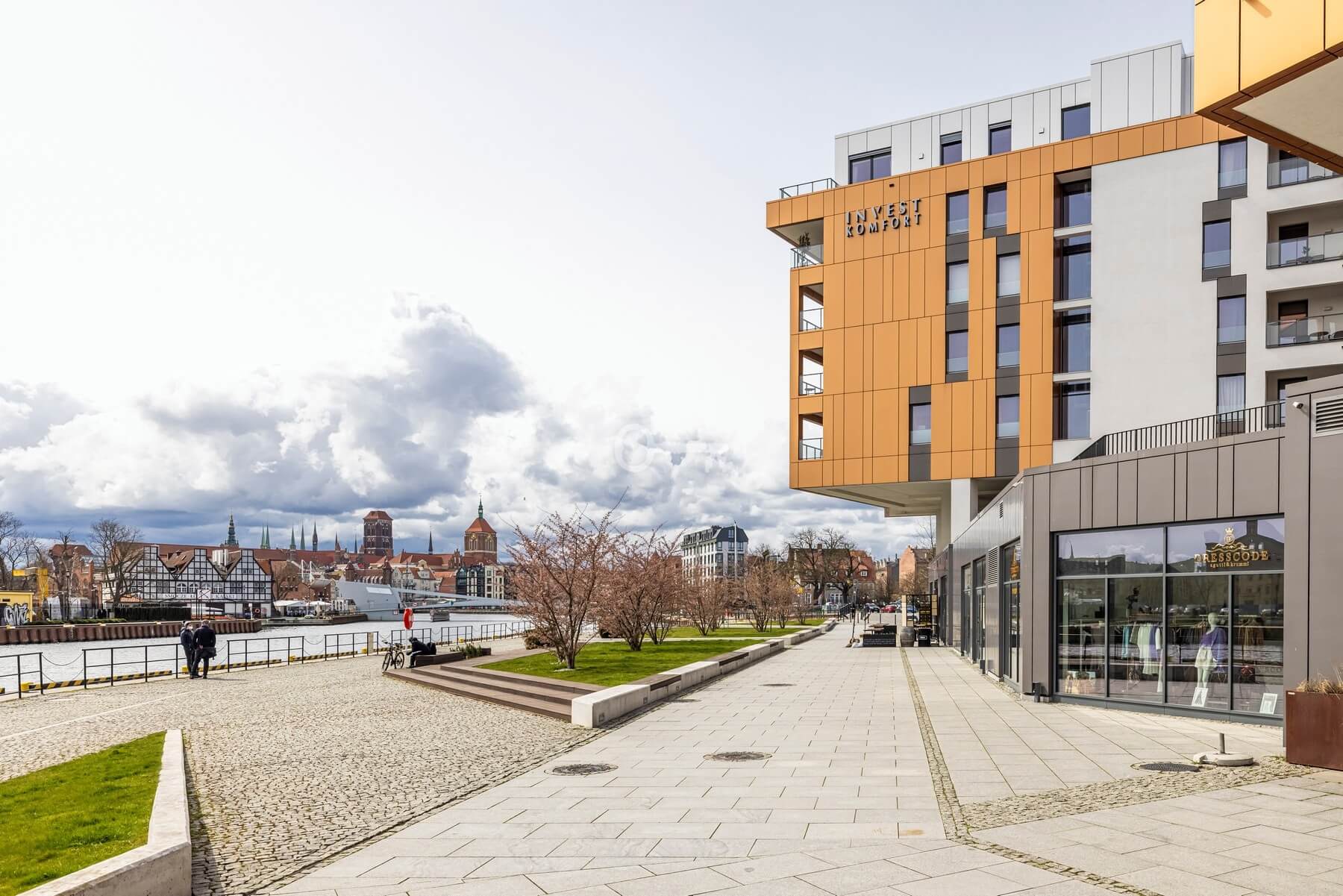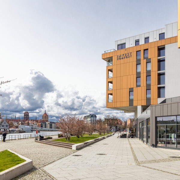 Apartament oferuje boczny widok na rzekę Motława z bliskością Gdańskiej starówki. Duże przeszklenia salonu gwarantują widok na nasłoneczniony taras z pięknym widokiem na rzekę . Elegancki projekt tej inwestycji nowoczesnych, przestronnych wnętrz części wspólnych od reprezentacyjnego holu, przez salę klubową z biblioteką po strefę relaksu i rekreacji, przyciągnie z pewnością spojrzenia gości i spełni oczekiwania mieszkańców. Budynek zostanie oddany do użytku mieszkańców w I połowie 2027 roku