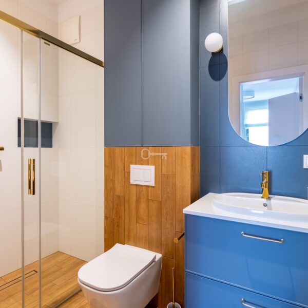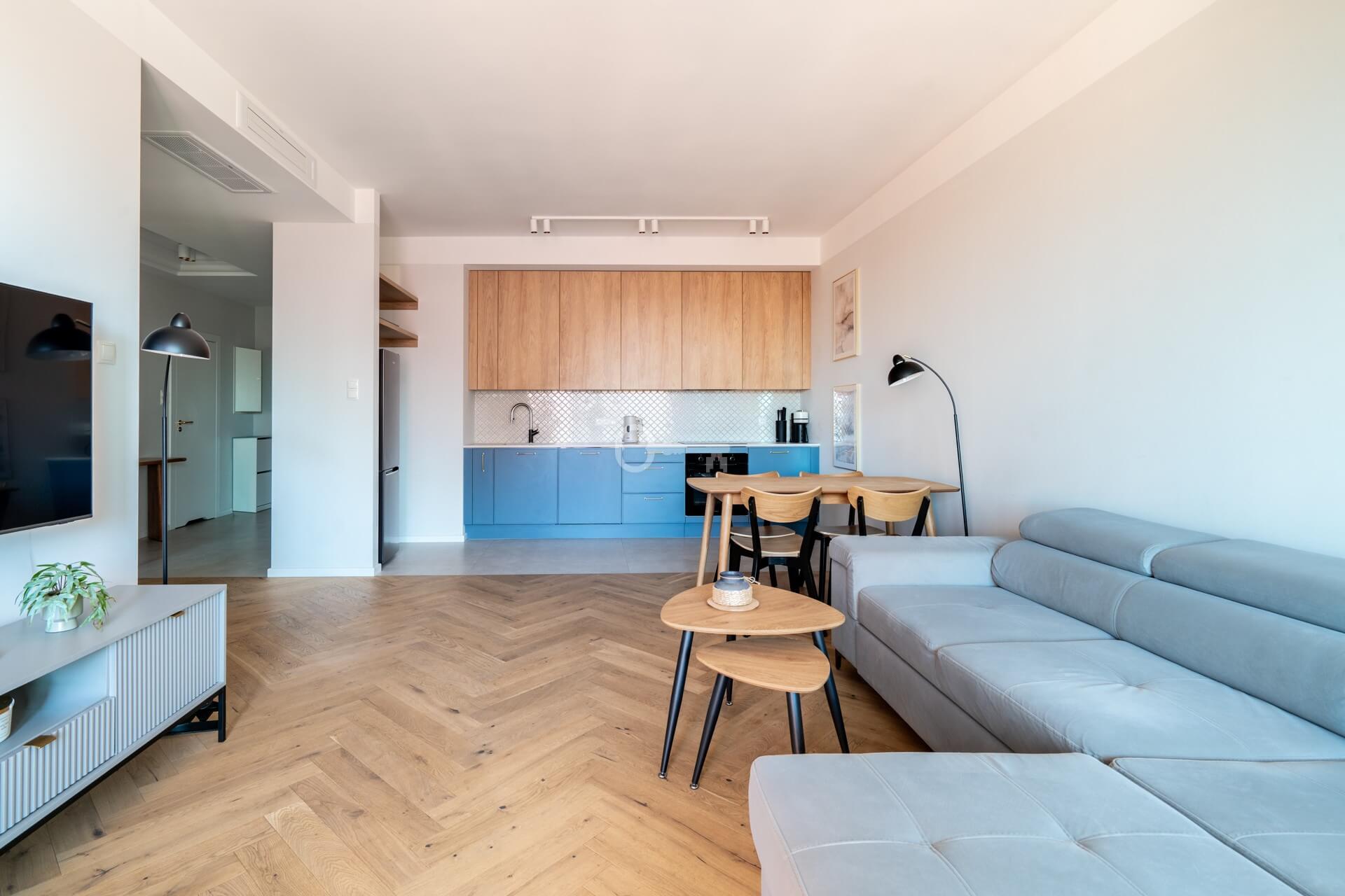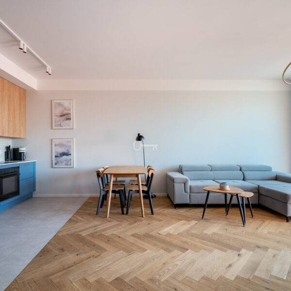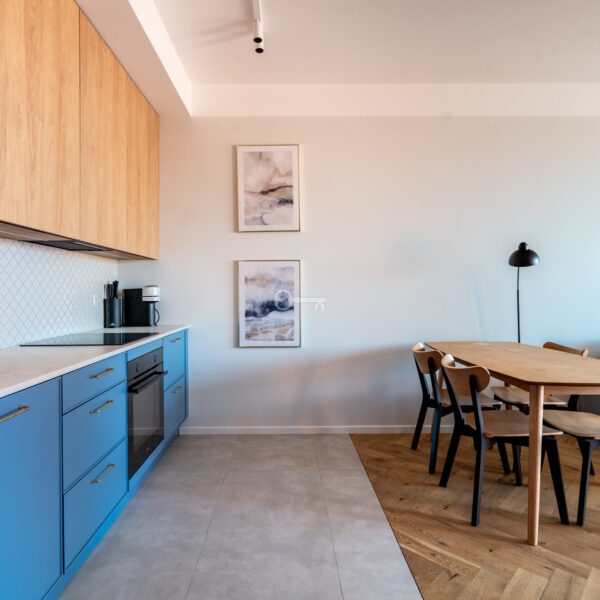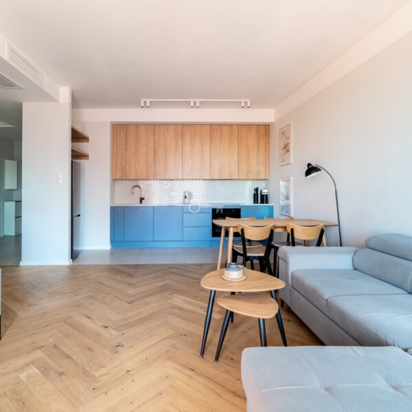Wnętrza zostały wykończone w wysokim standardzie, z dbałością o detale oraz jakość materiałów. Apartament jest w pełni wyposażony i gotowy do zamieszkania bez dodatkowych nakładów finansowych. Dla pełnego komfortu mieszkańców zainstalowano klimatyzację. Przestronny taras stanowi naturalne przedłużenie salonu i jest idealnym miejscem do relaksu z widokiem na tętniące życiem nabrzeże.