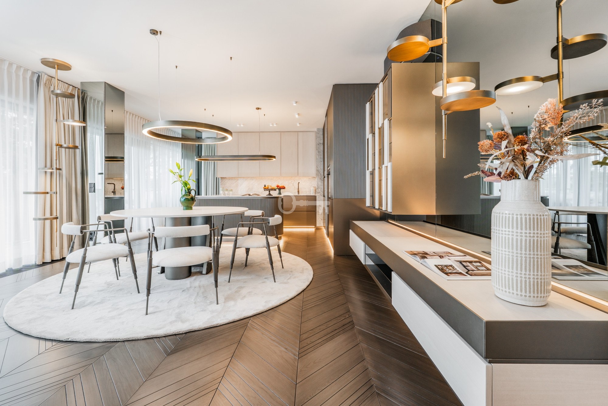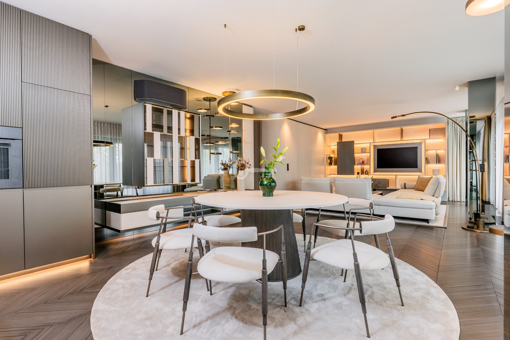 Meble w apartamencie zostały wykonane przez włoską firmę Shake, kwintesencję elegancji i prestiżu, dodając wnętrzom niepowtarzalnego charakteru.