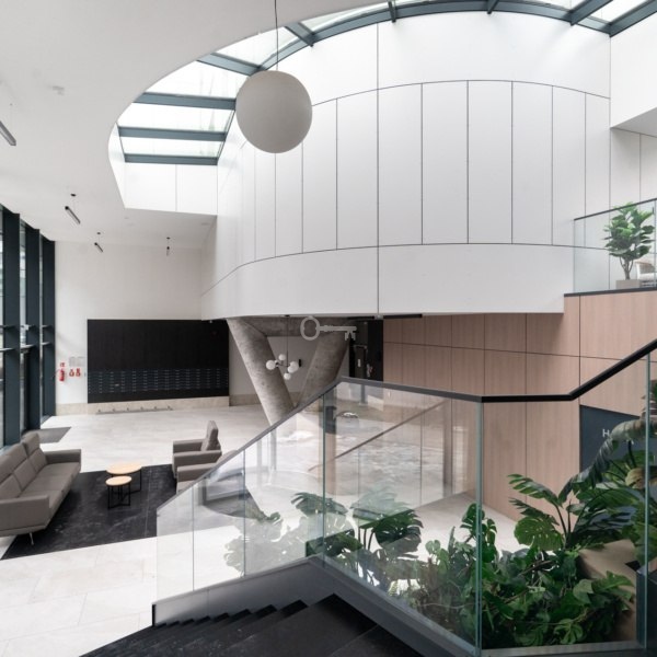 Inwestycja z 2023 roku, wykończona w nowoczesnym stylu. Przestronne, reprezentacyjne wejście z portiernią oraz strefą wypoczynkową. Na parterze budynku znajdują się lokale usługowe a pod budynkiem hala garażowa z miejscami parkingowymi oraz komórkami lokatorskimi.