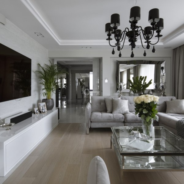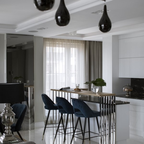 Apartament został zaprojektowany przez renomowaną pracownię FIND-DESIGN, co gwarantuje najwyższą estetykę i staranność w każdym detalu. Ściany zdobią wysokiej jakości farby marki Benjamin Moore oraz luksusowe francuskie tapety. Oświetlenie to ekskluzywne lampy marek Masiero, Eichholtz i Astro, a meble pochodzą od renomowanych producentów, takich jak Joop, Cedros i Klimek & Klimek. Ceramika i armatura to dzieła uznanych marek: Duravit, Kaldewei, Hansgrohe, Grohe oraz Villeroy & Boch.