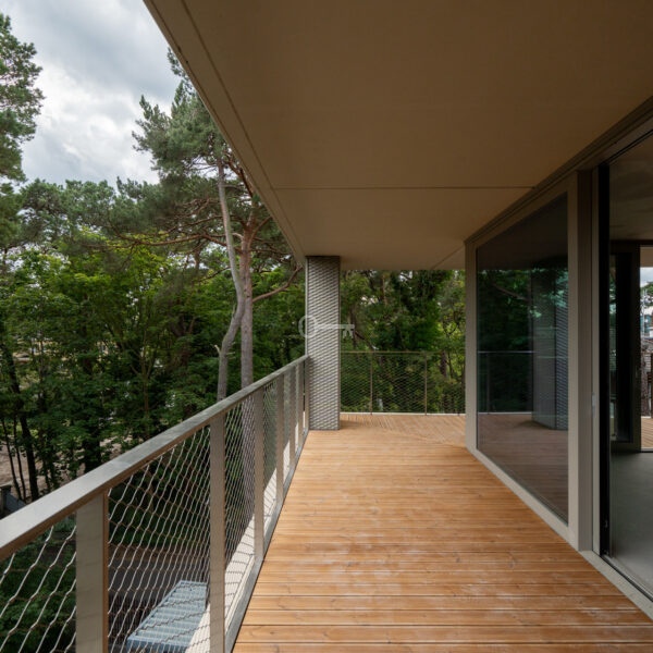 * balkony wykończone w drewnie, z balustradami ze stali nierdzewnej.