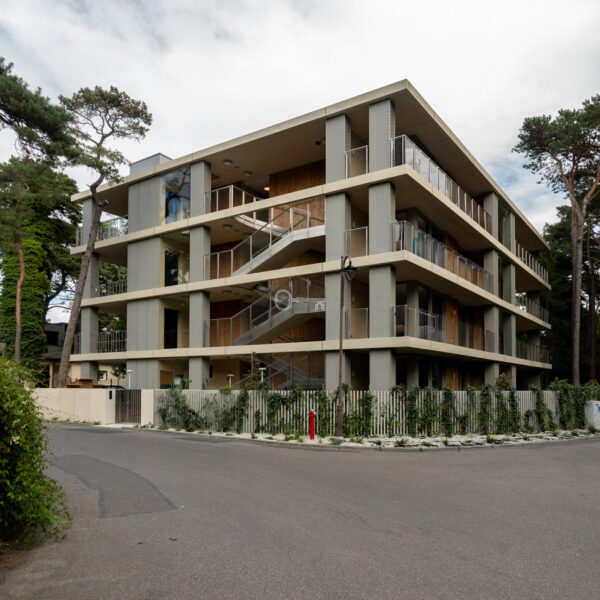 Willa Jūratė to inwestycja klasy premium, zrealizowana w technologii żelbetowej płytowo-słupowej, z wentylowaną fasadą i panoramicznymi przeszkleniami. Budynek wyposażony jest w windę, garaż podziemny z 12 miejscami postojowymi oraz 3 miejscami zewnętrznymi. Na terenie posesji znajduje się system nawadniania zieleni, oświetlenie zewnętrzne oraz automatyczna brama wjazdowa.