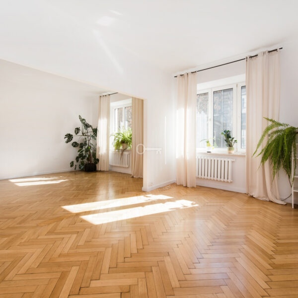 Detale: W pokojach zachowano oryginalne dębowe parkiety, które stanowią szlachetną bazę do renowacji lub nowoczesnej interpretacji wnętrza.