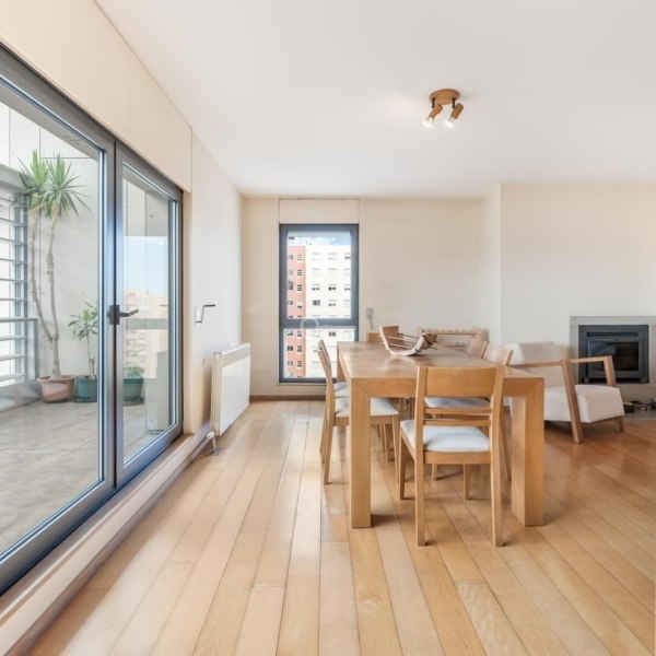 Dwupoziomowy apartament z 2 sypialniami (131m2) z widokiem na miasto położony w budynku Promotory, w Parque dos Príncipes, Telheiras, Lizbona.