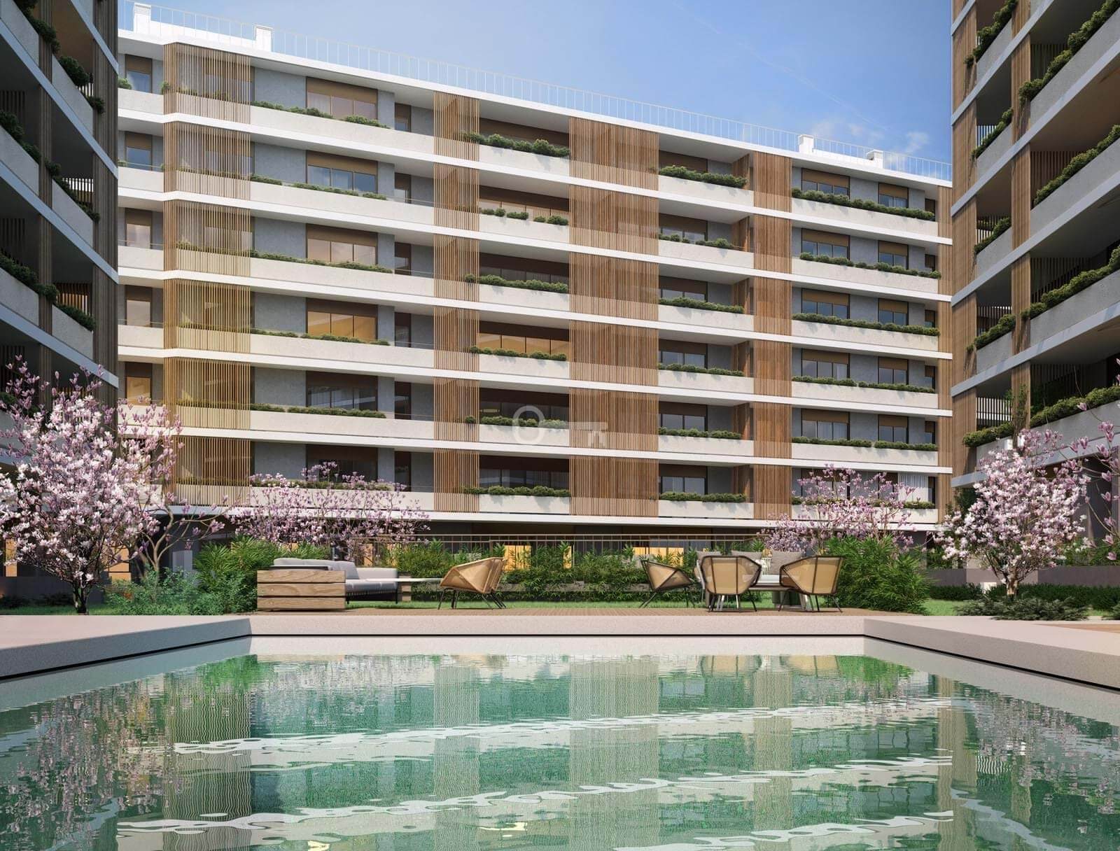The project consists of T1 to T4 apartments with balconies and terraces, with areas between 52 and 141 sqm, parking and storage. Each unit was designed in detail to offer maximum comfort and tranquility to its residents, in a perfect conversation between functionality and quality. Large interior areas cohabit with inviting outdoor spaces.