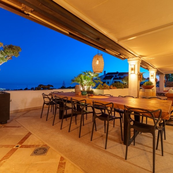 Penthouse płynnie łączy wnętrza z dużymi tarasami, idealnymi do relaksu i przyjmowania gości, oferując panoramiczne widoki na Morze Śródziemne, wybrzeże Marbelli oraz górę La Concha. Liczne miejsca do siedzenia i jadalnie na świeżym powietrzu pozwalają w pełni korzystać ze słonecznego klimatu Marbelli.