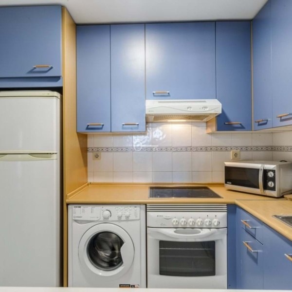 Apartament posiada jedną przestronną sypialnię i nowoczesną łazienkę, uzupełnione dużą powierzchnią wewnętrzną 71m² i prywatnym tarasem o powierzchni 14m² od strony południowej. Zaprojektowany z myślą o nowoczesnym komforcie, salon i jadalnia na otwartym planie są wzmocnione szklanymi drzwiami prowadzącymi na taras, dzięki czemu goście mogą podziwiać widoki na ogród i basen. Apartament jest klimatyzowany, w dobrym stanie i wyposażony w opcjonalne meble. Wyposażona kuchnia dodatkowo zwiększa wygodę, a prywatny parking i komórka lokatorska zapewniają dodatkową praktyczność.
