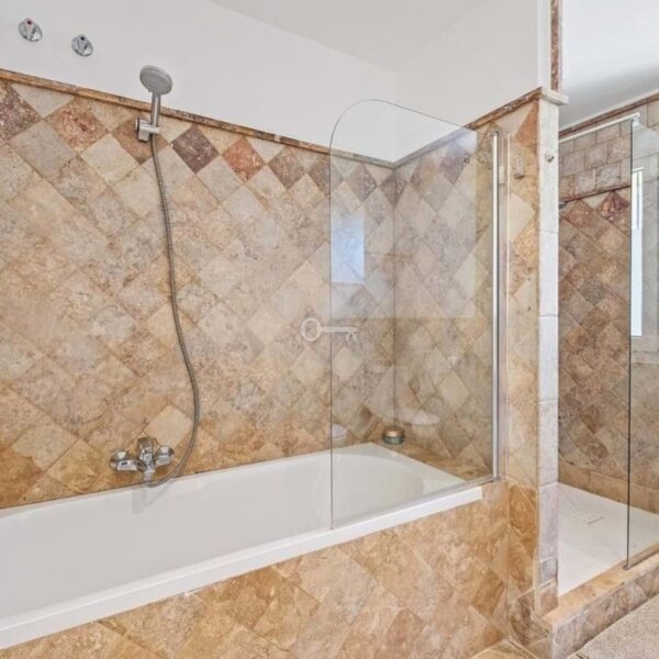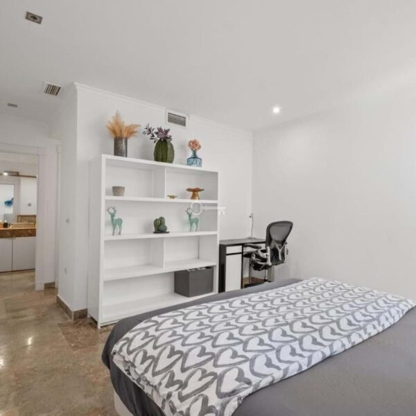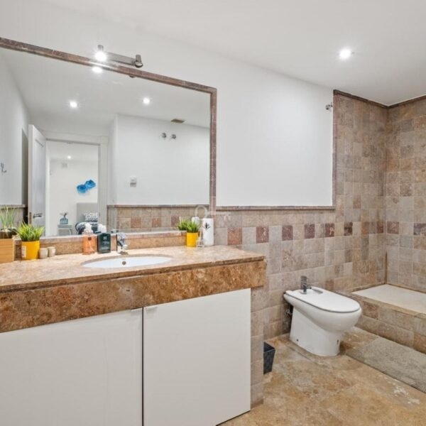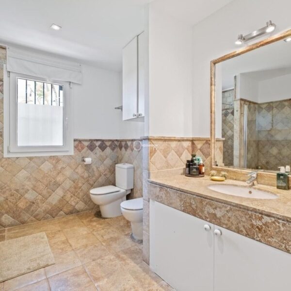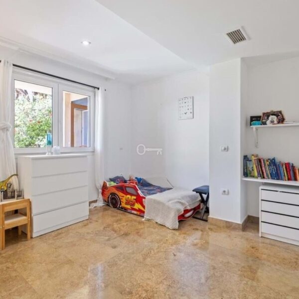 Przestronny apartament na parterze o powierzchni 184 m2 i 70 m2 tarasów, w klasycznym śródziemnomorskim stylu, z elegancją i wygodą. Znajduje się w doskonałej lokalizacji, blisko morza i plaży. To sprawia, że jest to dobry wybór dla osób, które lubią wybrzeże. Apartament ma trzy duże sypialnie, dwie z łazienkami i trzecią łazienkę z toaletą dla gości. Wszystkie łazienki mają ogrzewanie podłogowe.
