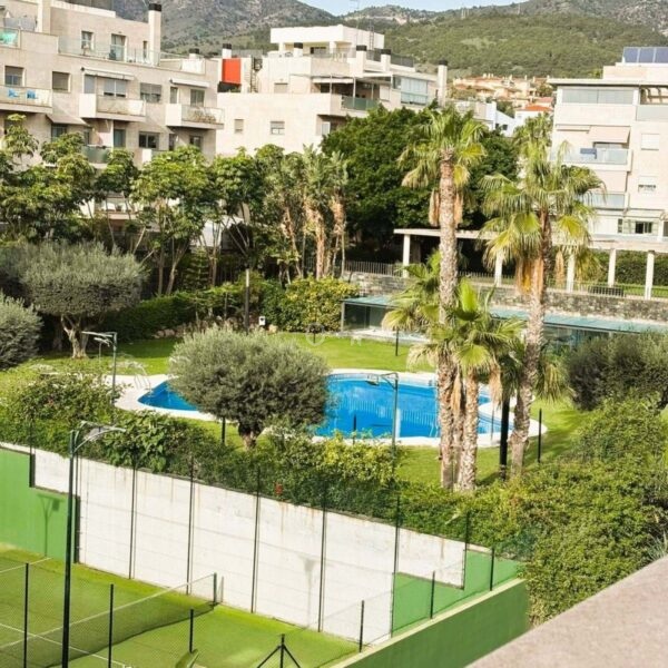 Zadbane osiedle ze wspólnym basenem i dobrze utrzymanymi ogrodami.