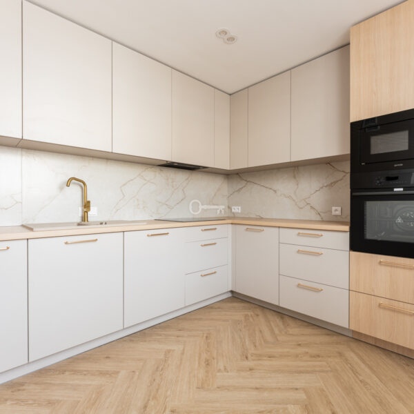 Kuchnia została zaprojektowana w nowoczesnym stylu – jest w pełni wyposażona, ergonomiczna i funkcjonalna, dzięki czemu doskonale sprawdzi się dla osób ceniących komfort codziennego życia.