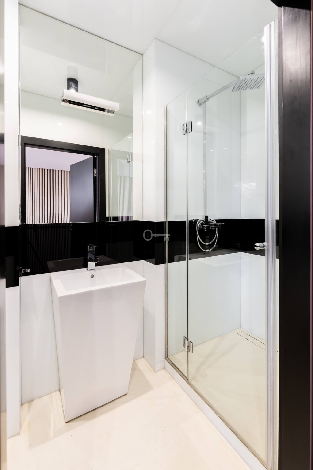 Sypialnie są przestronne i jasne, oferując spokojną i komfortową przestrzeń do odpoczynku. Łazienki utrzymane są w klasycznej, eleganckiej stylistyce, łączącej estetykę z funkcjonalnością.