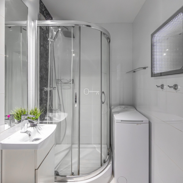 * łazienka z prysznicem,