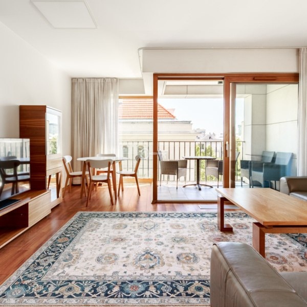 * Przestronny salon z dużą loggią,