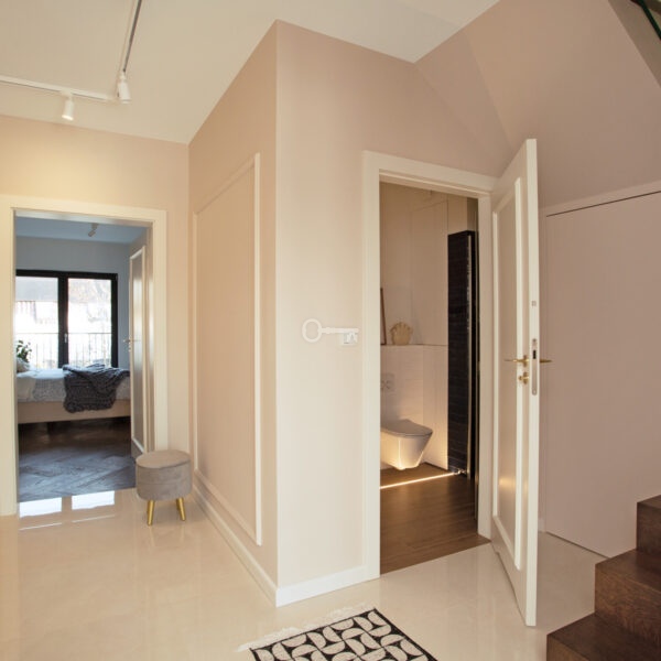 Apartament został zaprojektowany przez architekta wnętrz i wykończony w wysokim standardzie z dbałością o każdy detal.
