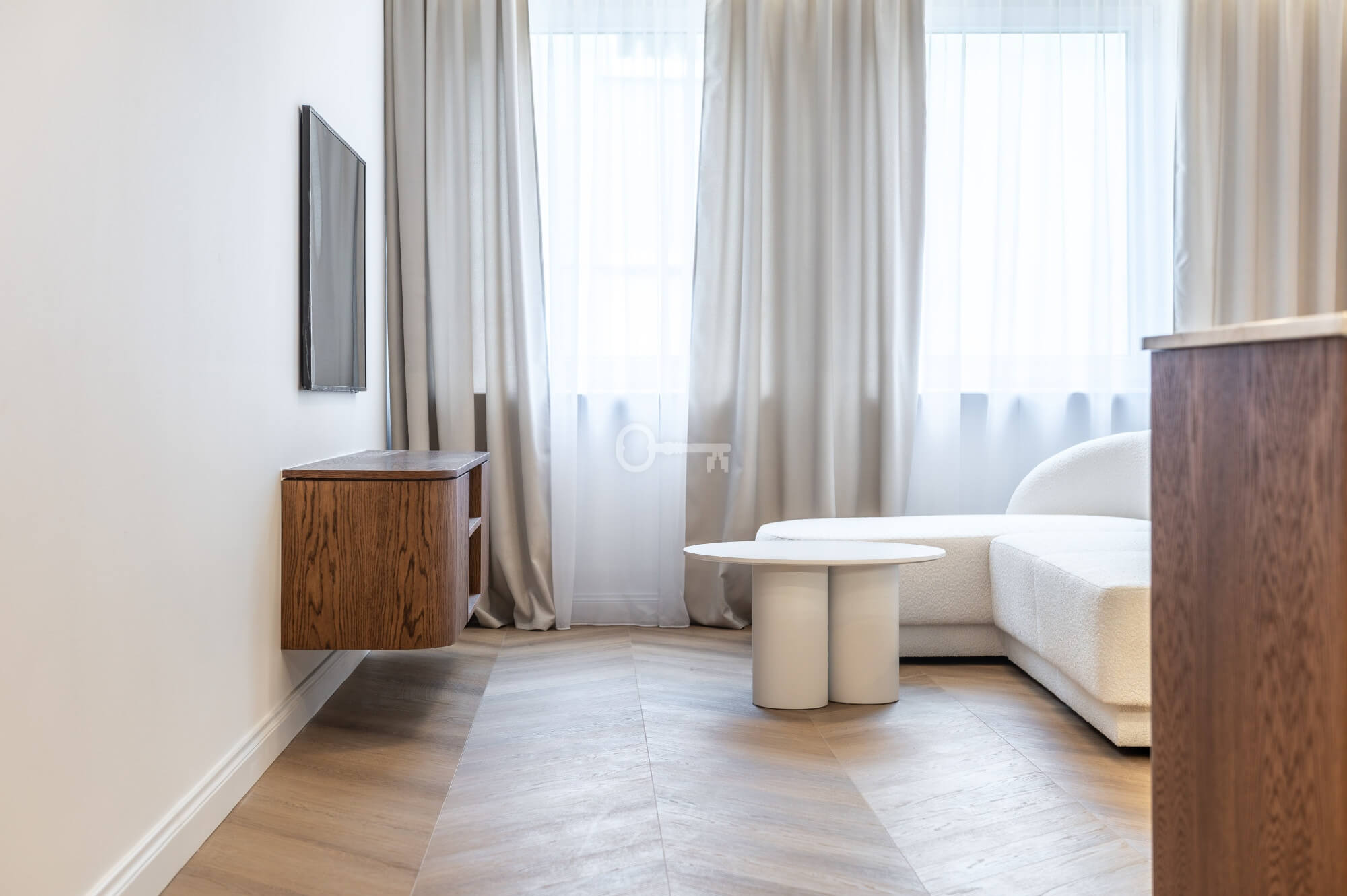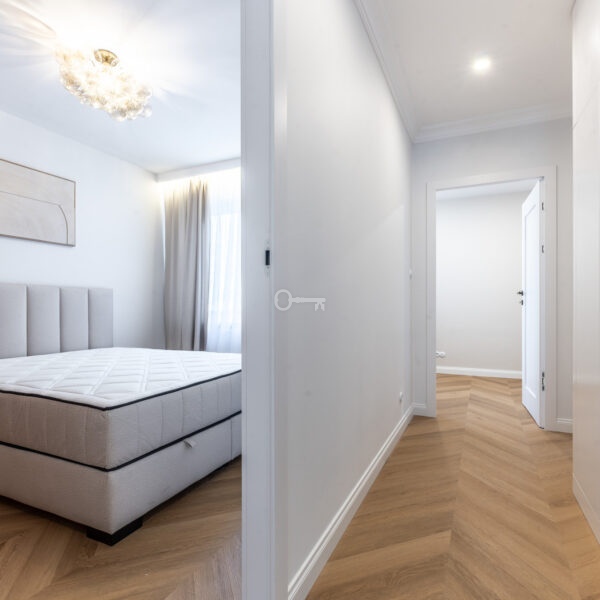 Ten starannie zaprojektowany, 80-metrowy apartament położony na 2. piętrze prestiżowego budynku Invest Komfort to propozycja dla osób, które poszukują połączenia elegancji, wygody i ponadczasowej jakości. Wnętrze zostało wykończone z niezwykłą dbałością o detal. Każdy element dobrano z myślą o trwałości, estetyce i codziennej wygodzie.
