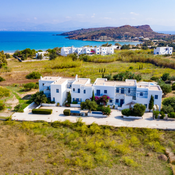 Tradycyjna cykladzka architektura tego projektu harmonijnie łączy się z minimalistycznym designem, tworząc niepowtarzalny styl, który odzwierciedla charakter wyspy. Dostępne są apartamenty z jedną i dwiema sypialniami, wille ogrodowe z dwiema i trzema sypialniami, a także maisonettes i luksusowe penthousy z panoramicznymi widokami na morze, co czyni tę inwestycję idealną opcją dla osób szukających nieruchomości w Grecji.