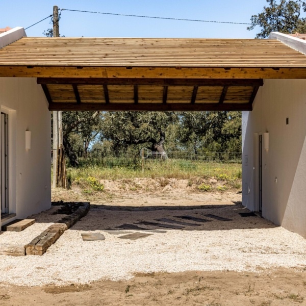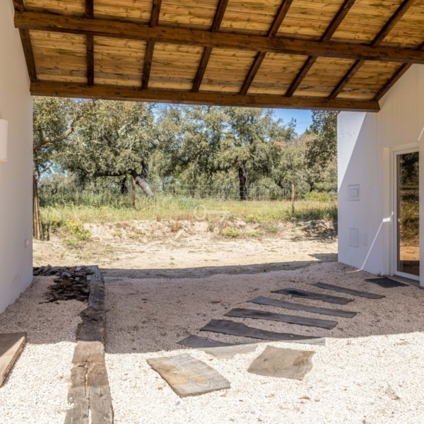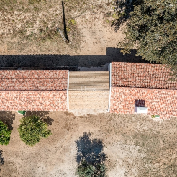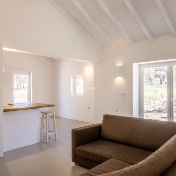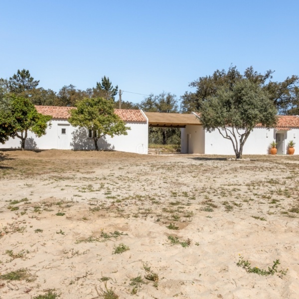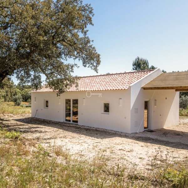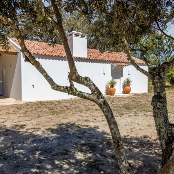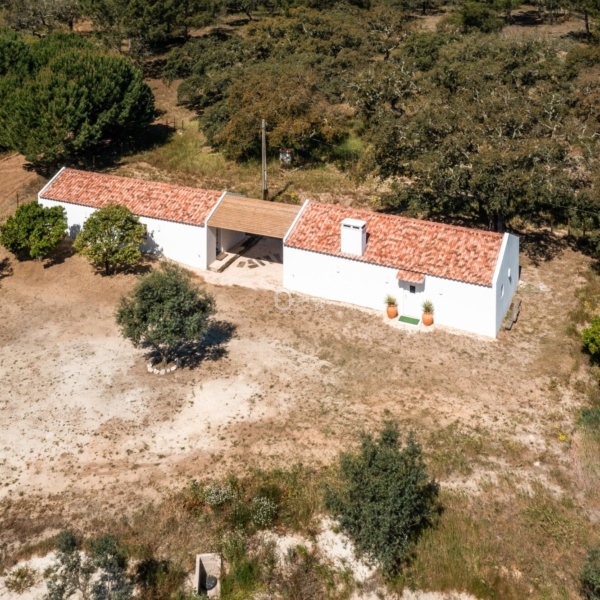 Monte Alentejano (dom wiejski) z 3 sypialniami, 41,40 m2 (powierzchnia zabudowy brutto), tarasem i rozległym widokiem na okolicę, położony na działce o powierzchni 7500 m2 w obszarze Abela, w Santiago do Cacém, region Melides. Typowy dom wiejski Alentejo został zbudowany około 1963 roku i został niedawno gruntownie przebudowany i rozbudowany do willi z 3 sypialniami o powierzchni 150 m2 (powierzchnia zabudowy brutto), obecnie w trakcie procedur licencyjnych. Nowa willa, o tradycyjnej architekturze, rozciąga się na parterze i nigdy nie była używana. Pozwolenie na budowę ma zostać wydane w marcu. Składa się z dużego salonu z kuchnią amerykańską, 3 apartamentów i jednej łazienki. Na jego terenie dominują dęby korkowe i sosny, a także kilka drzew owocowych w pobliżu domu. Położony w Arealão, w rejonie Abela, Santiago do Cacém. W odległości 15 minut jazdy od centrum Santiago do Cacém, 30 minut od plaż w Melides, 45 minut od Comporta. Półtorej godziny od Lizbony.