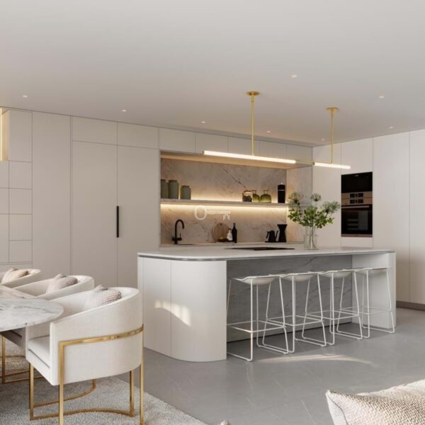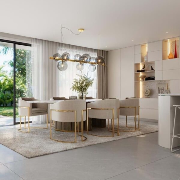 In this particular villa, the kitchen area has received a special upgrade, with state-of-the-art appliances, high-quality materials and finishes, as well as optimized storage solutions.