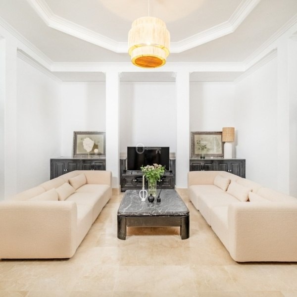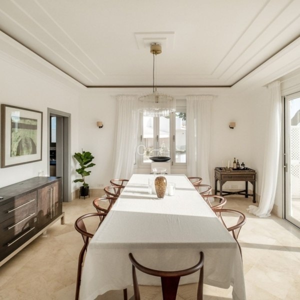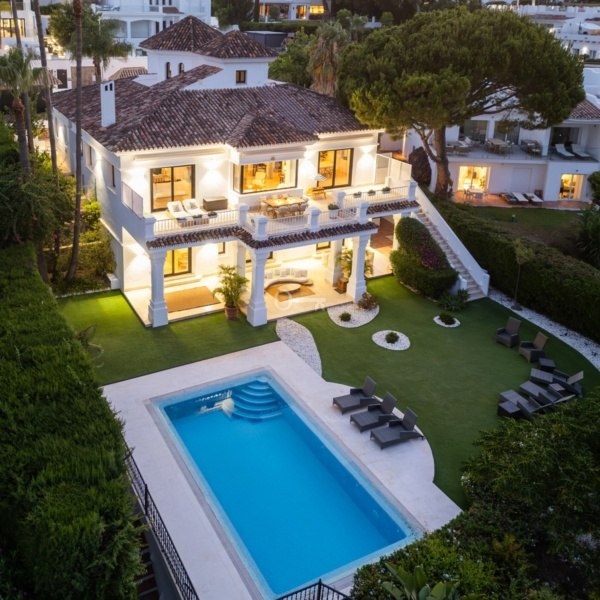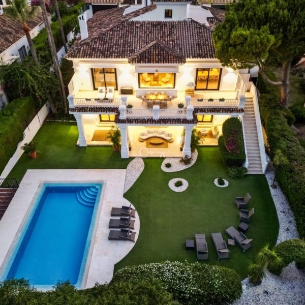 Willa położona jest przy cichej ślepej uliczce, w niewielkiej odległości od słynnej przystani Puerto Banús i ogrodów Aloha. Nieruchomość jest niezwykle wygodna pod względem rozkładu planu piętra. Wszystkie główne pomieszczenia socjalne, takie jak kuchnia, salon, jadalnia są dobrze połączone z bezpośrednim dostępem na zewnątrz do pięknej przestrzeni zewnętrznej, która zapewnia dużą ilość naturalnego światła słonecznego w całym domu.