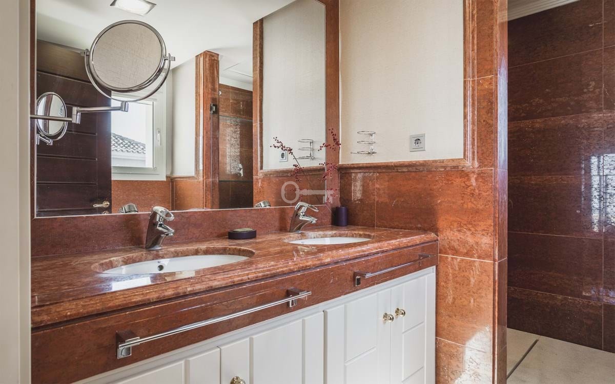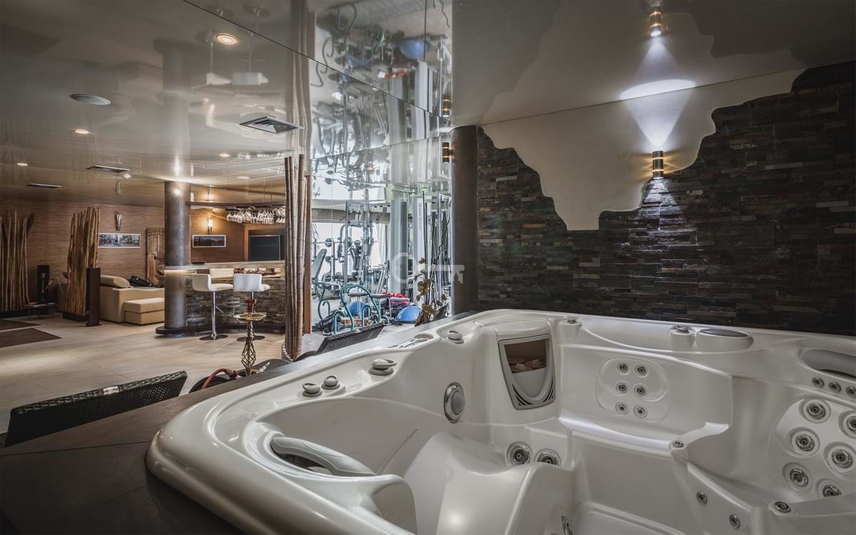 5 dwuosobowych sypialni, wszystkie na zewnątrz z prywatnym tarasem i łazienkami. Toaleta dla gości, siłownia, łaźnia turecka, sauna, jacuzzi, pokój gier, kino z ładnym wbudowanym barem, biuro, pomieszczenie gospodarcze, pralnia i garaż.