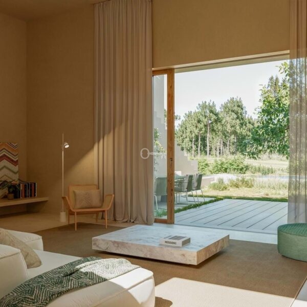 Projekt architektoniczny willi został podpisany przez Pedro Domingos Arquitetos, którego podejście docenia organiczną integrację budynków z naturalną topografią terenu. Architekturę definiują zrównoważone bryły, wysokiej jakości materiały i silny związek między przestrzenią wewnętrzną i zewnętrzną, tworząc jasne, spokojne i ponadczasowe otoczenie w ciągłym dialogu z lasem sosnowym i polami golfowymi.