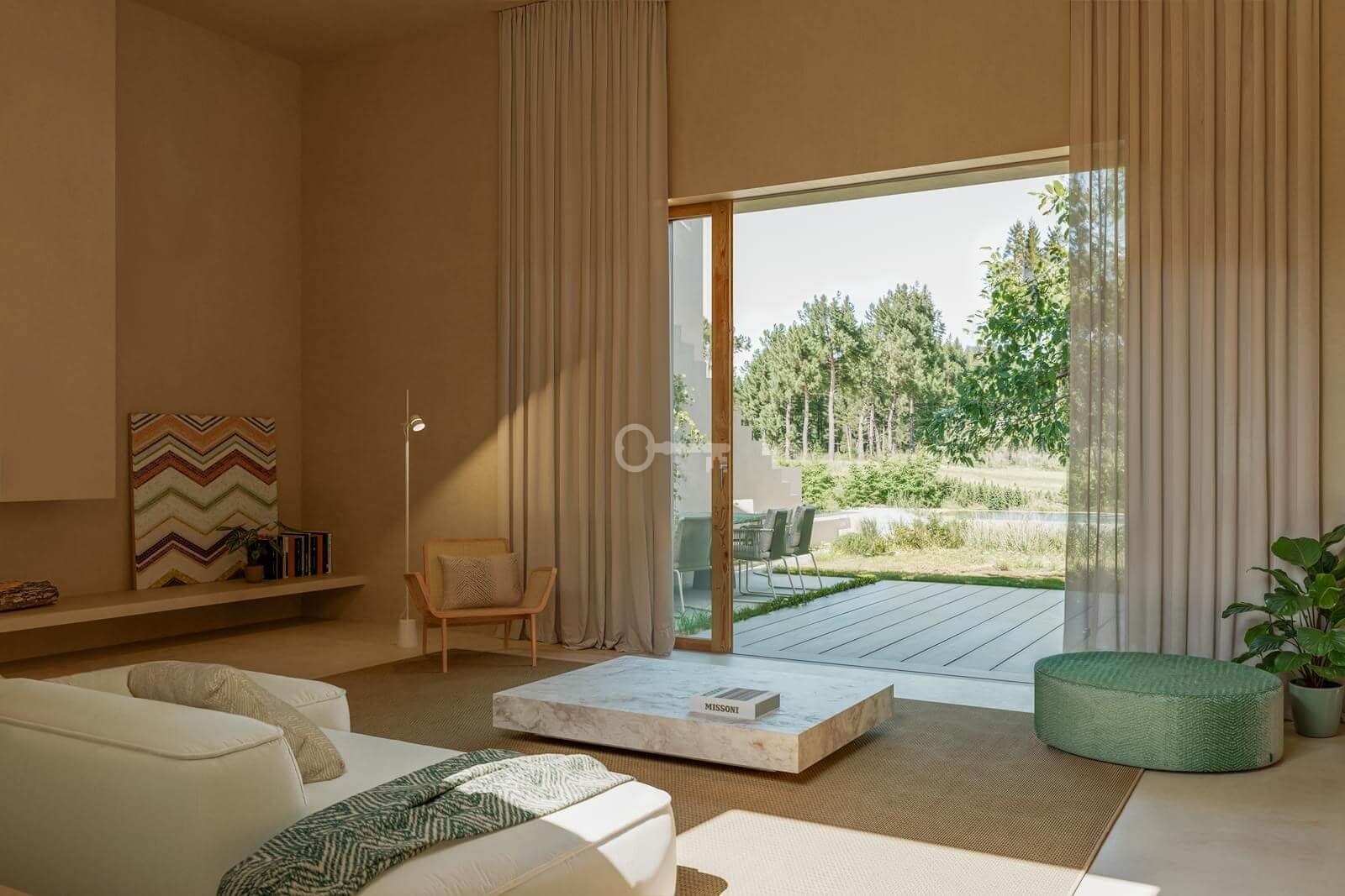 Projekt architektoniczny willi został podpisany przez Pedro Domingos Arquitetos, którego podejście docenia organiczną integrację budynków z naturalną topografią terenu. Architekturę definiują zrównoważone bryły, wysokiej jakości materiały i silny związek między przestrzeniami wewnętrznymi i zewnętrznymi, tworząc jasne, spokojne i ponadczasowe otoczenie w ciągłym dialogu z lasem sosnowym i polami golfowymi.