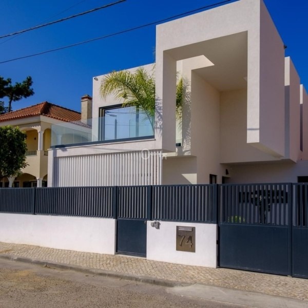 W niewielkiej odległości od Herdade da Aroeira i plaży Fonte da Telha, prezentujemy tę nowoczesną willę z 4 sypialniami, dwoma piętrami, ogrodem i basenem, położoną na działce z frontem przy dwóch ulicach.