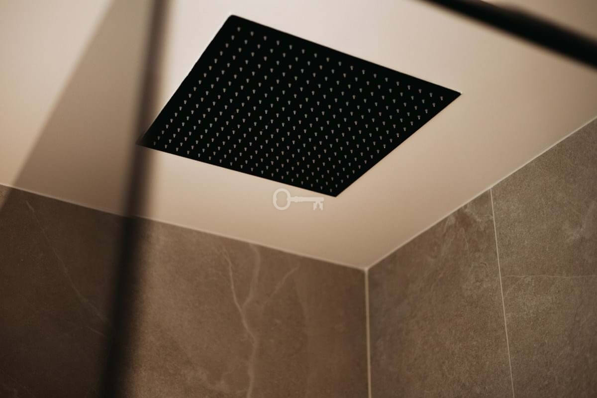 The lower level features two generously sized bedrooms with double beds, built-in closets, and a spacious storage room. The stylish bathroom is fitted with a luxury rain shower, underfloor heating and includes both a washing machine and dryer for added convenience.