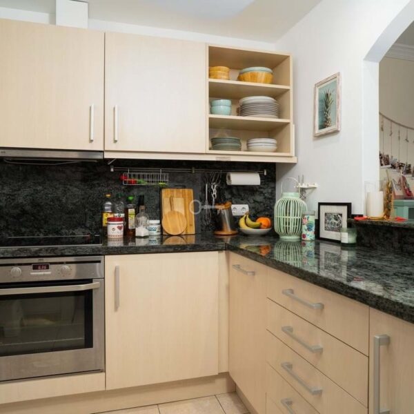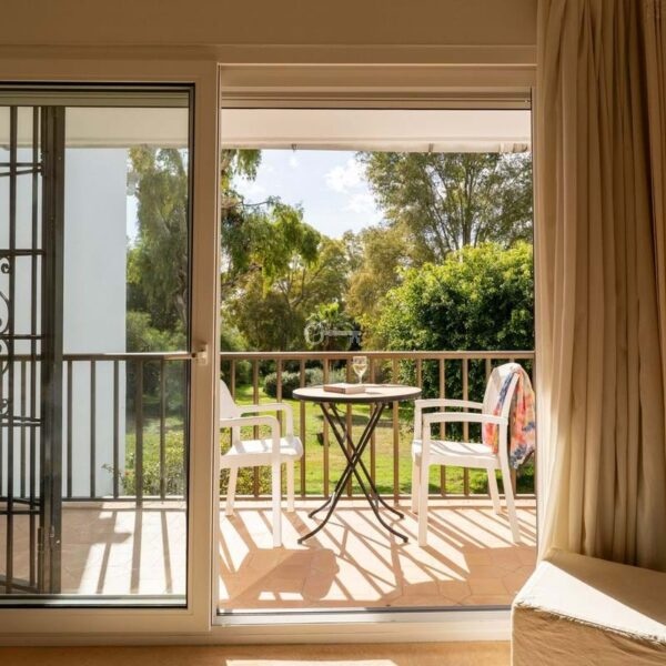 The south-facing orientation ensures abundant natural light throughout the day in both the living room and main bedroom, while offering open views over lush green areas with no buildings in front, guaranteeing privacy and an uninterrupted sense of space. Outdoor living is a key highlight, with two private balconies and a generous terrace, ideal for entertaining, dining al fresco, or simply enjoying the Mediterranean climate.