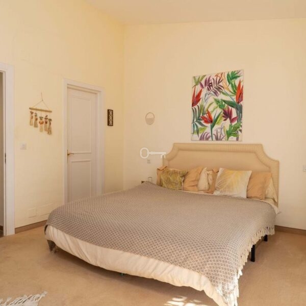 The property features two spacious bedrooms and two bathrooms, including a master bedroom with en-suite bathroom. Designed to maximize light and space, the home boasts high ceilings and a huge living room with a chimney, creating an open, airy but warm atmosphere that is both welcoming and impressive.