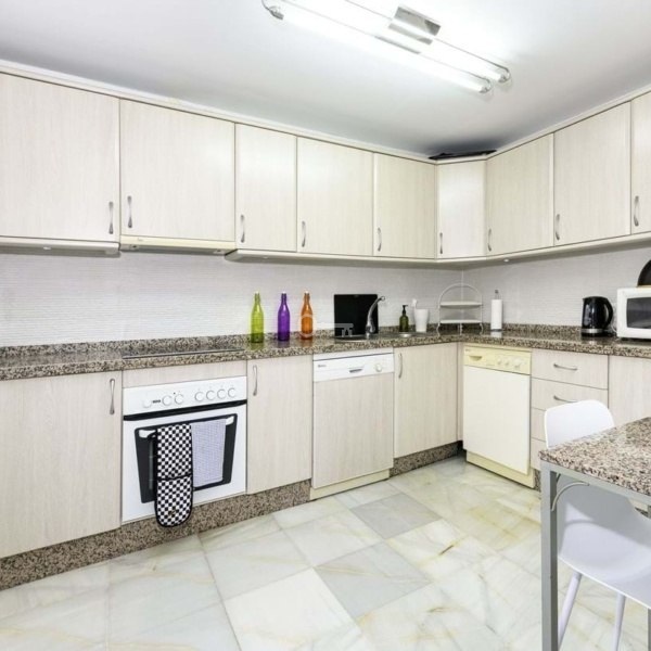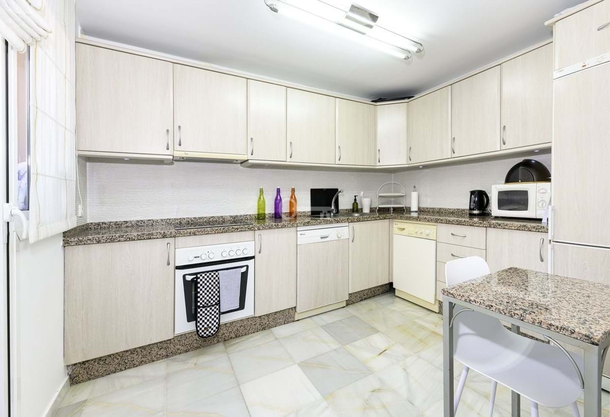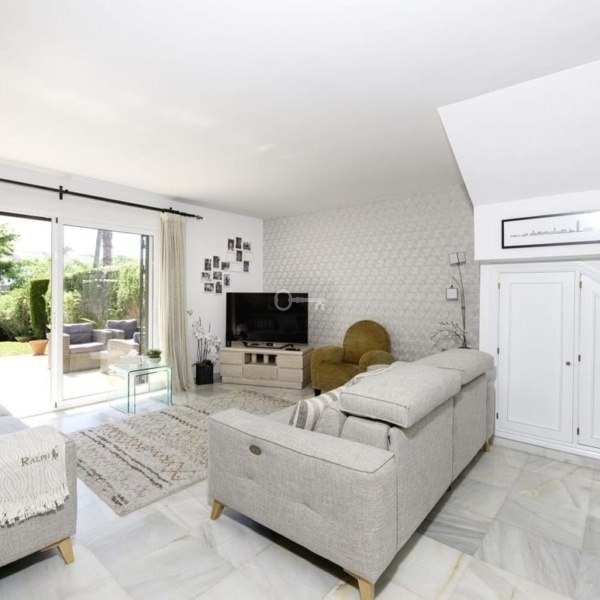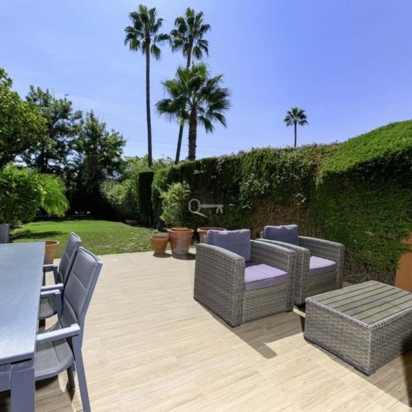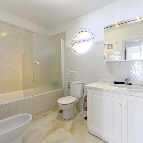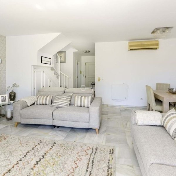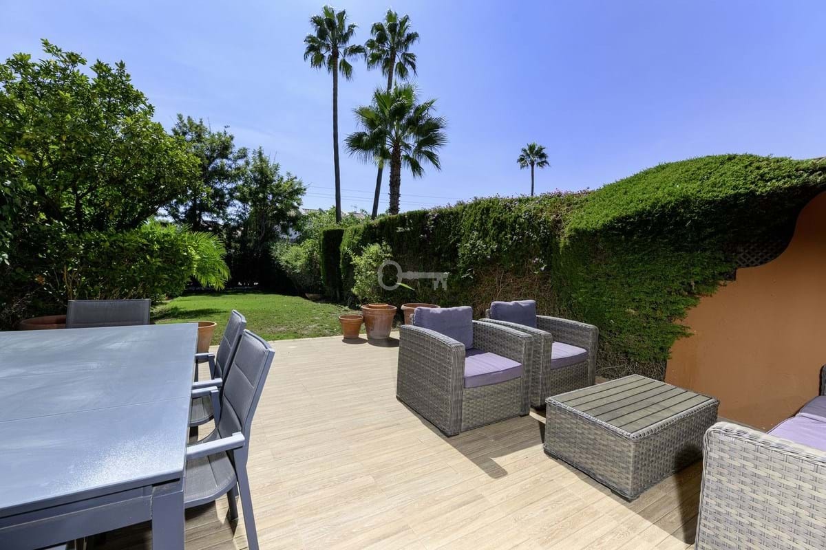 WŁAŚCIWOŚCI: Trzy przestronne sypialnie z wbudowanymi szafami, dwie stylowo odnowione łazienki (w tym łazienka główna) oraz w pełni wyposażona kuchnia z wydzieloną pralnią. Ale prawdziwy showstopper? Wspaniały ogród i taras o powierzchni 207 m² od strony południowej, skąpany w słońcu od świtu do zmierzchu, idealny do spożywania posiłków na świeżym powietrzu, zabaw dla dzieci lub po prostu chłonięcia stylu życia na Costa del Sol. Ponadto z obu sypialni gościnnych roztacza się częściowy widok na morze.