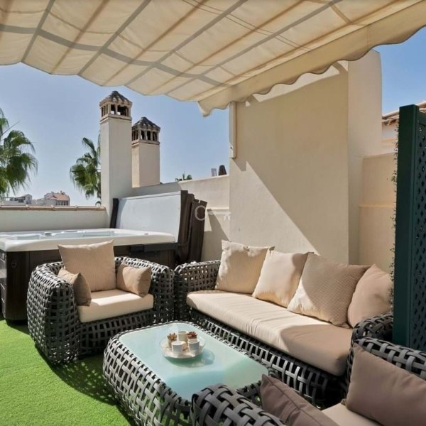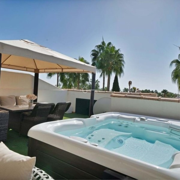 Nieruchomość o powierzchni ponad 300 m² obejmuje 3 sypialnie, 2 łazienki i toaletę dla gości. Obszerny salon i jadalnia wychodzą na taras od strony zachodniej z widokiem na wspólne ogrody i basen. Jasna, w pełni wyposażona kuchnia uzupełnia przestronny układ domu, a prywatne solarium na dachu z jacuzzi stanowi idealne miejsce na relaks i podziwianie panoramicznych widoków.
