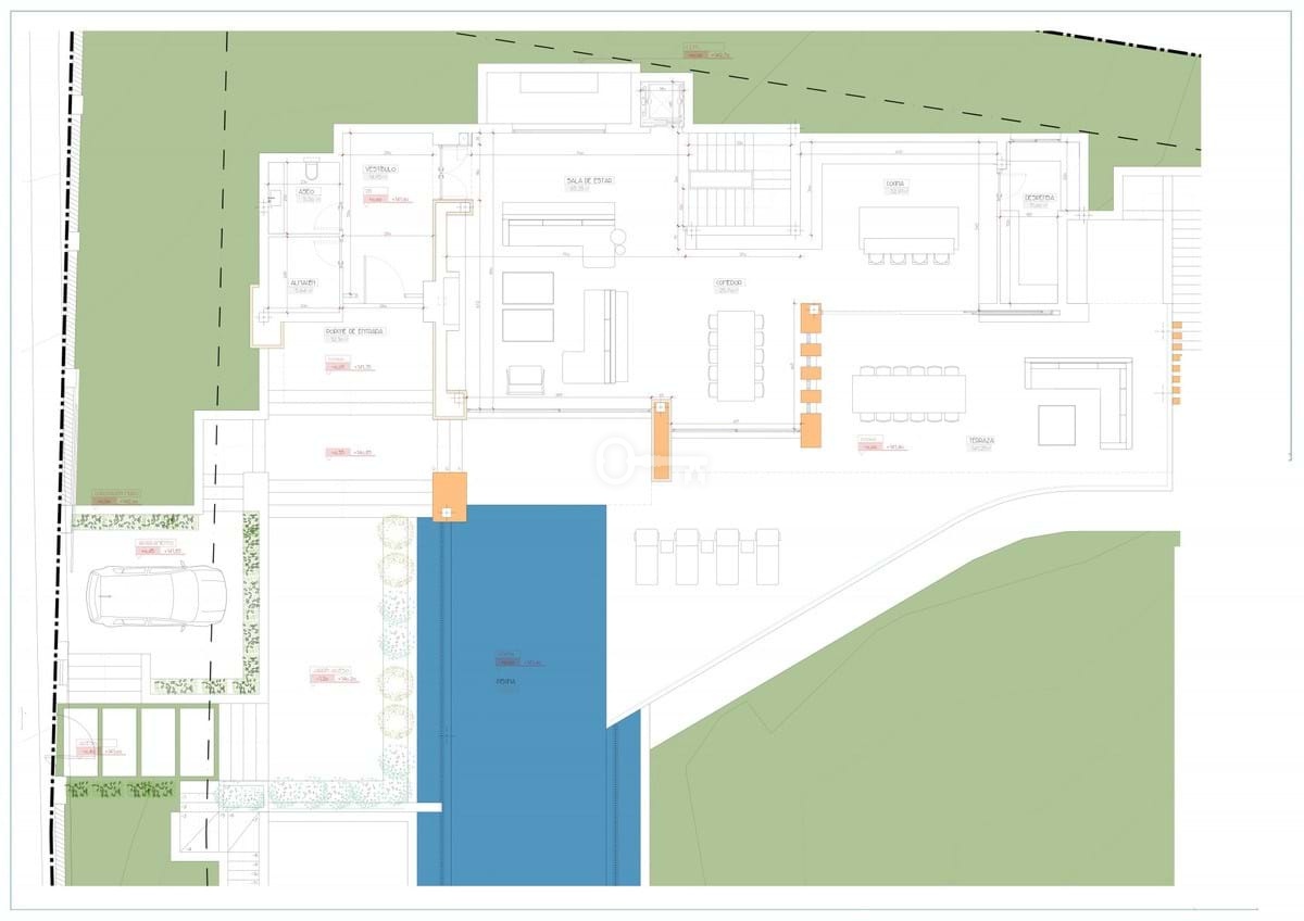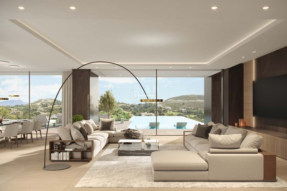 Projekt willi obejmuje koncepcję życia na otwartym planie, płynnie łącząc się z rozległymi tarasami, które wdzięcznie zakrzywiają się wokół nieruchomości, prowadząc mieszkańców w kierunku malowniczego basenu. Przestronne korytarze, oświetlone dużą ilością naturalnego światła wpadającego przez ogromne szklane okna, tworzą płynny przepływ w całej rezydencji.