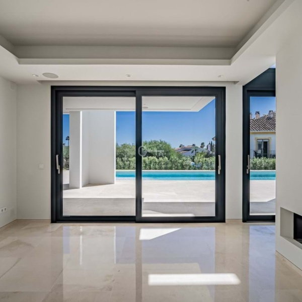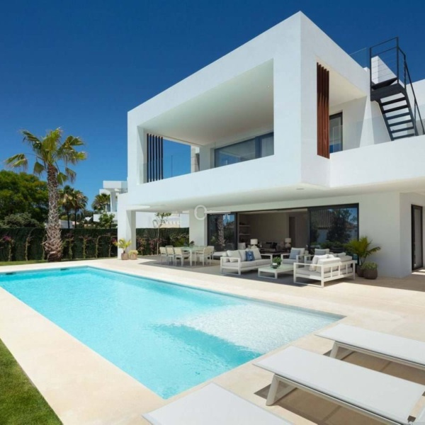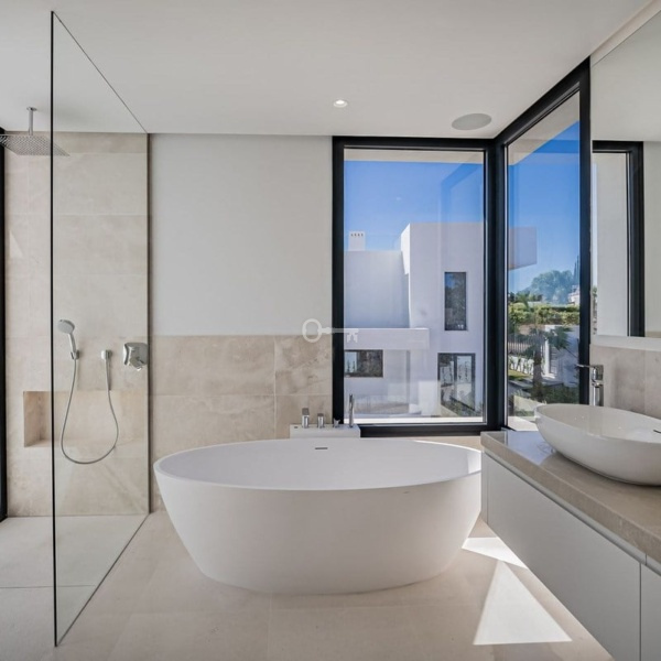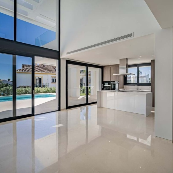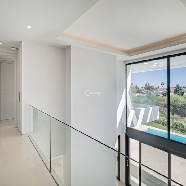 Piękna i znacząca współczesna willa, umeblowana w bardzo wysokim standardzie, więc jest kluczem gotowym do wprowadzenia się. Położony w spokojnej dzielnicy mieszkalnej między Marbellą i Esteponą, otoczony kilkoma polami golfowymi, jest tylko 10 minut jazdy od plaży, 15 minut od San Pedro de Alcantara z mnóstwem dobrych restauracji, barów i sklepów. i są również kilka supermarketów bliżej.