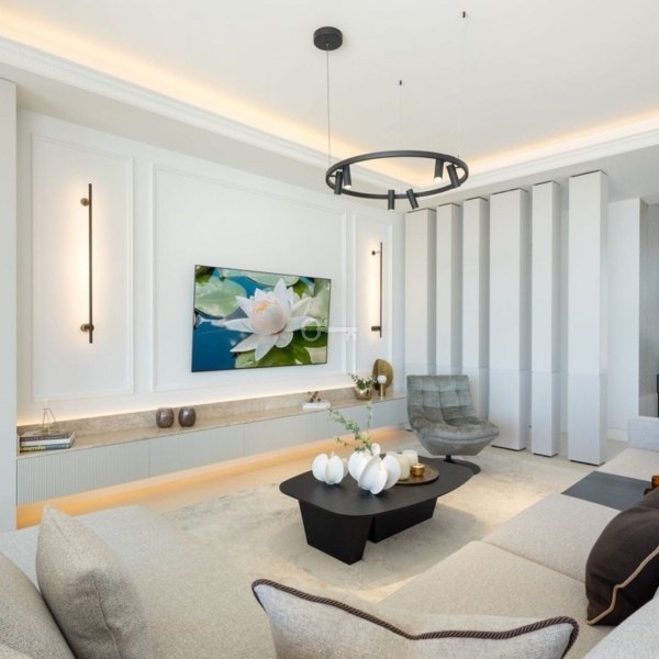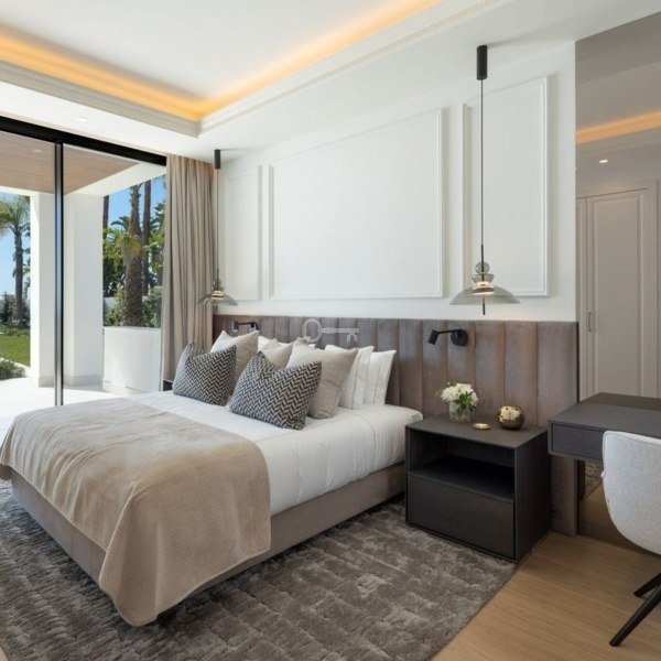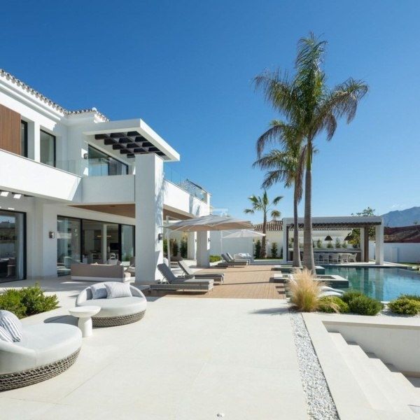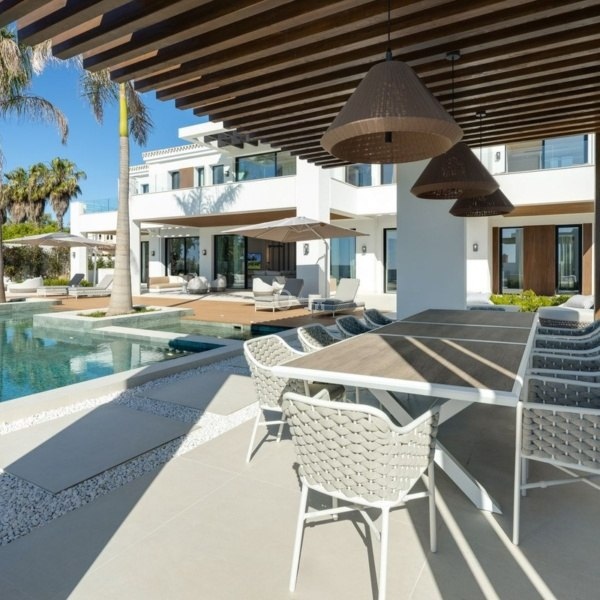 Ta oszałamiająca nowo wybudowana willa znajduje się w ekskluzywnej urbanizacji Monte Halcones, jednej z najbardziej pożądanych części Benahavís. Skierowana na południe i zaprojektowana przez renomowanego architekta, oferuje rozległe panoramiczne widoki na morze i góry, wzmocnione przez okna sięgające od podłogi do sufitu, które wypełniają dom naturalnym światłem.
