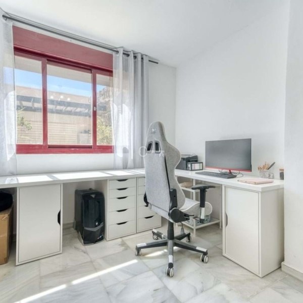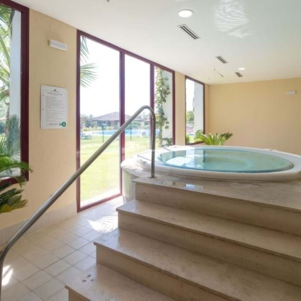 Dom oferuje trzy przestronne dwuosobowe sypialnie z wbudowanymi szafami. Dwie z nich mają łazienkę z prysznicem, a trzecia pełna łazienka uzupełnia układ. Prywatny ogród, stworzony z myślą o niskich kosztach utrzymania, otacza willę z opcją dodania basenu, aby poprawić styl życia na świeżym powietrzu. Mieszkańcy mogą korzystać z udogodnień w stylu kurortu, w tym krytego basenu z podgrzewaną wodą, pięciu odkrytych basenów, chiringuito z grillem, kortów tenisowych, kortów do padla i squasha, siłowni, jacuzzi i nieskazitelnych ogrodów komunalnych.