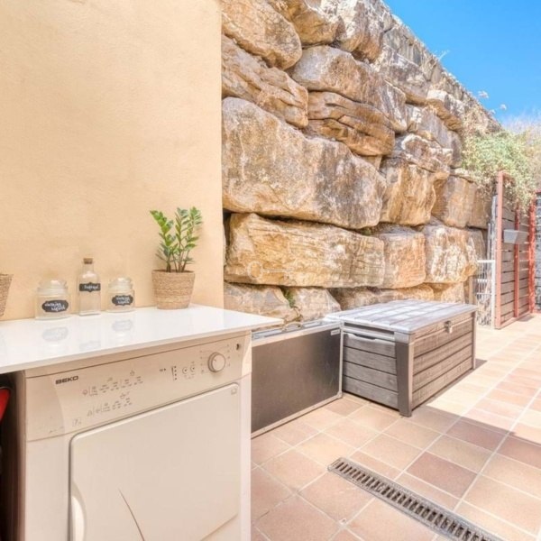 Ta wolnostojąca willa położona jest w bezpiecznej prywatnej społeczności w Benahavís i cieszy się spokojną okolicą, widokami na otwartą przestrzeń i doskonałymi połączeniami komunikacyjnymi. Tętniące życiem centrum Marbellas i Puerto Banús znajdują się zaledwie kilka minut od hotelu, a do Estepony można dojechać w niecałe 15 minut. Zaprojektowana z myślą zarówno o pełnoetatowym życiu, jak i wakacjach, willa obejmuje salon i jadalnię na otwartym planie z działającym kominkiem, zupełnie nową wyposażoną kuchnię i oddzielne pomieszczenie gospodarcze. Przesuwne drzwi z salonu prowadzą na zadaszony taras, idealne miejsce na posiłki na świeżym powietrzu, rozrywkę lub relaks w prywatnym jacuzzi.