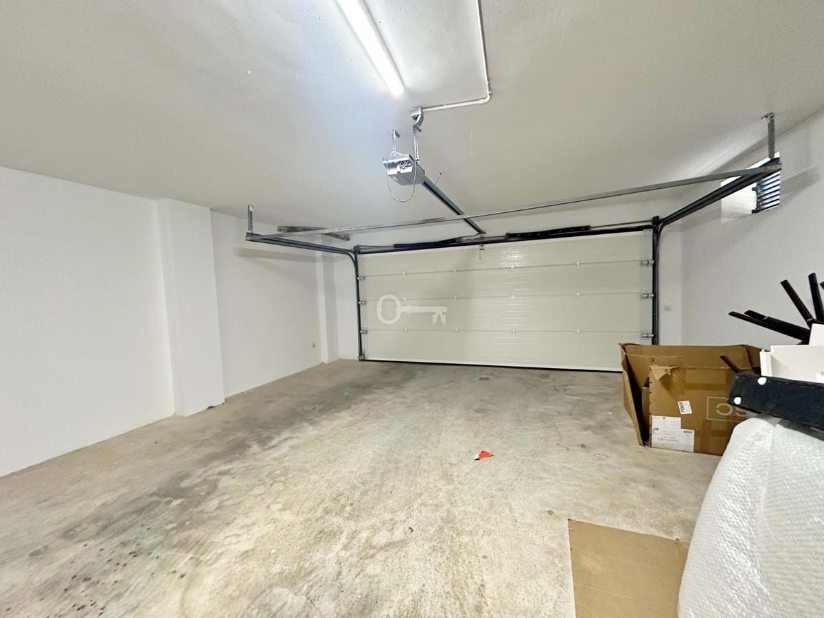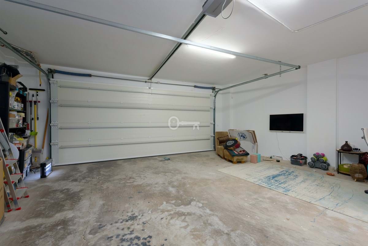 Schody w dół prowadzą do dużego podestu z pomieszczeniem gospodarczym i wewnętrznymi drzwiami, które prowadzą do dużego podwójnego garażu z elektrycznymi drzwiami, idealnego na dwa duże samochody lub można go przekształcić w dodatkową przestrzeń mieszkalną.