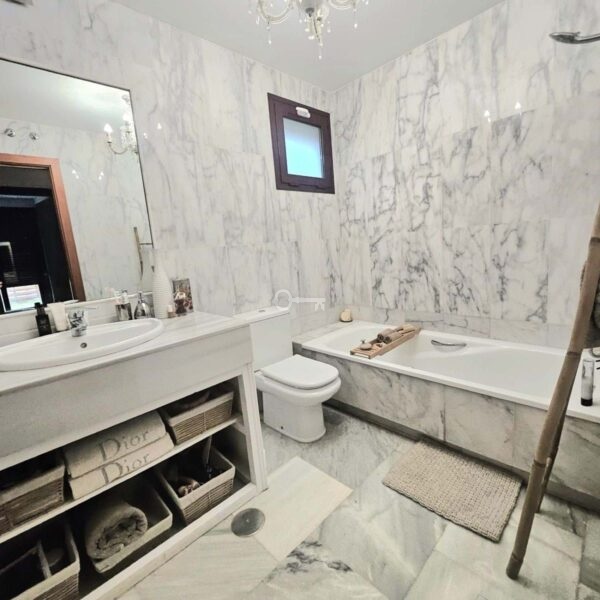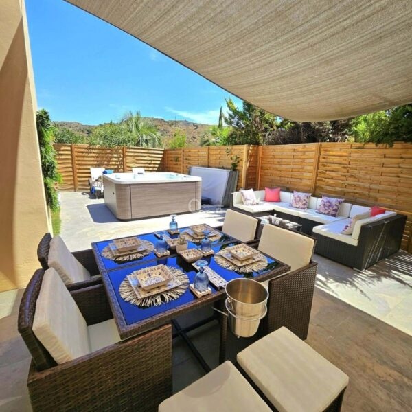 Nienagannie utrzymana willa obejmuje trzy sypialnie (dwie z łazienkami), trzy łazienki (dwie z łazienkami), zachęcający hol wejściowy, salon-jadalnię na otwartym planie oraz zupełnie nową, w pełni wyposażoną kuchnię ze zintegrowanym piekarnikiem, kuchenką mikrofalową, ekspresem do kawy, lodówko-zamrażarką, zmywarką i blatami kwarcowymi. Luksusowa marmurowa podłoga rozciąga się na całej powierzchni, a rozległy taras na świeżym powietrzu niedawno odnowiony obejmuje 5-osobowe jacuzzi dla maksymalnego relaksu. W pełni ogrodzony ogród z automatycznym nawadnianiem zapewnia niskie koszty utrzymania.
