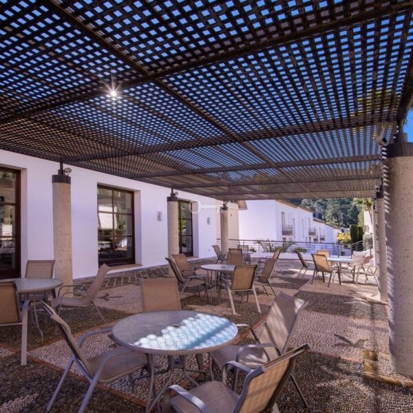 Nieruchomość oferuje rozległe, niezakłócone widoki na góry, które można podziwiać zarówno od wewnątrz, jak i z ponad 200 m² zadaszonych i odkrytych tarasów, tworząc idealne przestrzenie do relaksu, zabawiania gości lub po prostu kontemplowania piękna otoczenia. Orientacja południowo-wschodnia gwarantuje światło przez cały dzień, zapewniając ciepło i dobre samopoczucie w każdym zakątku.