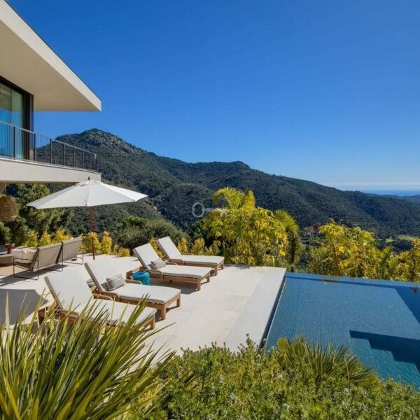 Its distinctive boomerang-shaped layout, thoughtfully arranged on a single level, has been crafted to maximise natural light and sweeping views of the sea and mountains, while ensuring complete privacy and a constant dialogue with the landscape. An elegant summer kitchen, infinity pool, and expansive terraces extend the interior living spaces outdoors, creating a refined and fluid lifestyle experience.