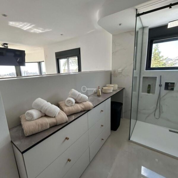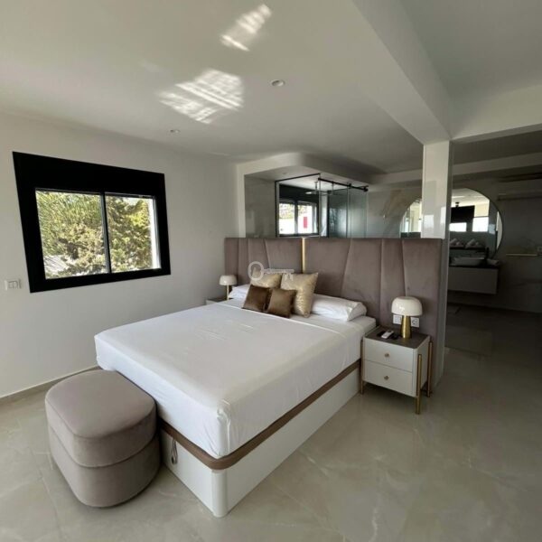 Built on a generous 800 m² plot, the villa boasts 550 m² of beautifully designed living space, featuring 4 spacious bedrooms and 5 modern bathrooms. The property enjoys an ideal orientation (south, east, west), allowing natural light to flood the interiors throughout the day.
