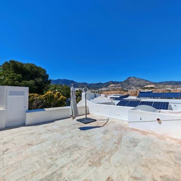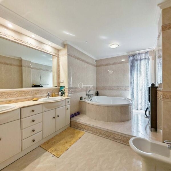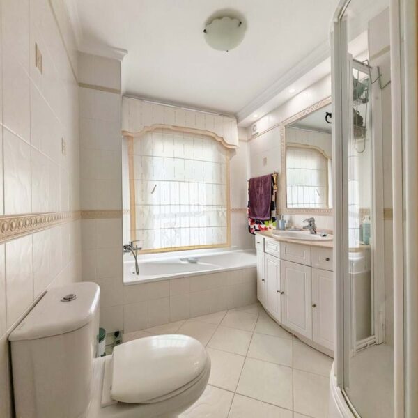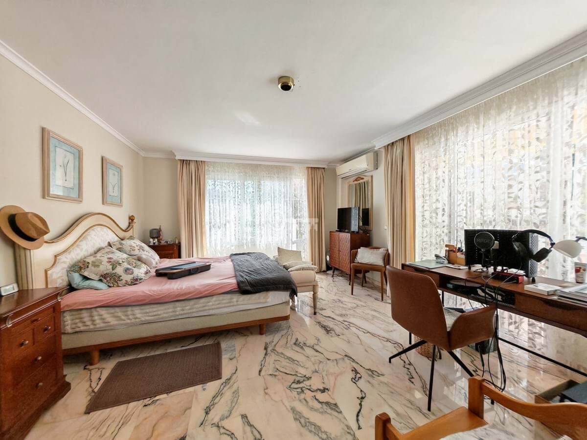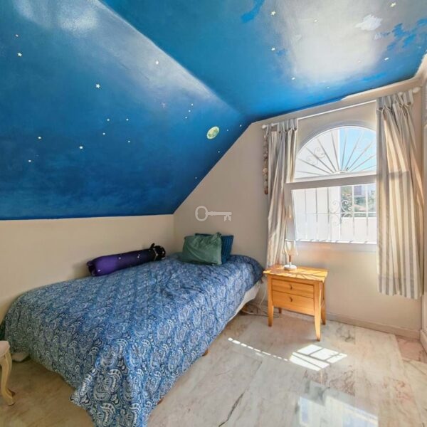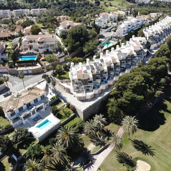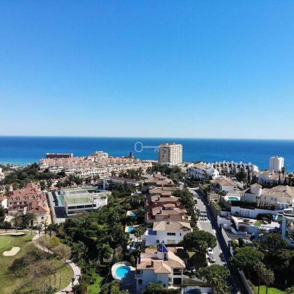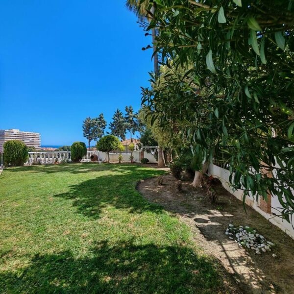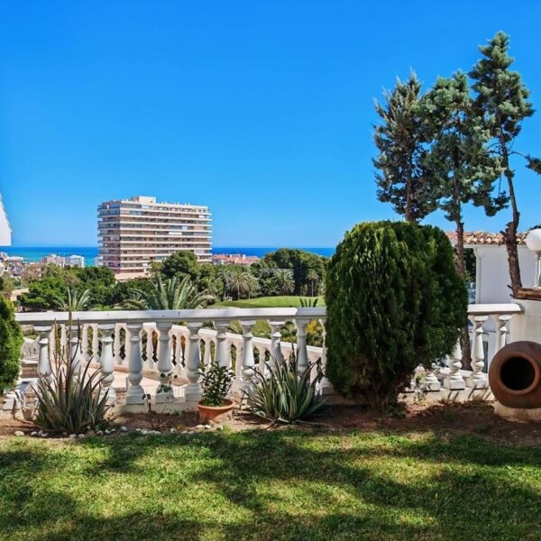 Semi Detached Villa for sale in , Benalmadena with 5 bedrooms, 3 bathrooms, 3 en suite bathrooms, 1 toilet and with orientation south/east, with communal swimming pool, private garage (2 parking spaces) and private garden. Regarding property dimensions, it has 241 m² built, 800 m² plot and 100 m² terrace. Has the following facilities front line golf, amenities near, transport near, air conditioning, central heating, fully fitted kitchen, marble floors, basement, guest room, storage room, solarium, double glazing, dining room, guest toilet, private terrace, kitchen equipped, living room, study room, sea view, golf view, automatic irrigation system, laundry room, gated community, street view, doorman, close to sea / beach, close to golf, uncovered terrace, separate dining room, balcony, optional furniture, good condition, close to shops, close to town, close to schools, guest apartment, inside golf resort, office room, roof terrace and close to restaurants.