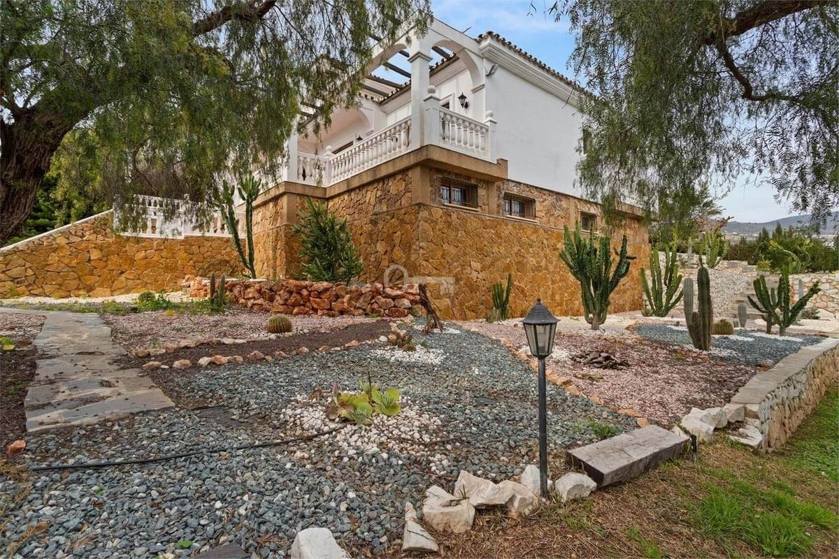 The villa is distributed over two main floors plus a basement level and offers six spacious bedrooms and four bathrooms. The living areas are generous and inviting, featuring a large living room and dining area ideal for both everyday living and larger gatherings. The kitchen provides ample workspace and storage, and several terraces in different orientations allow you to enjoy the sun throughout the day.