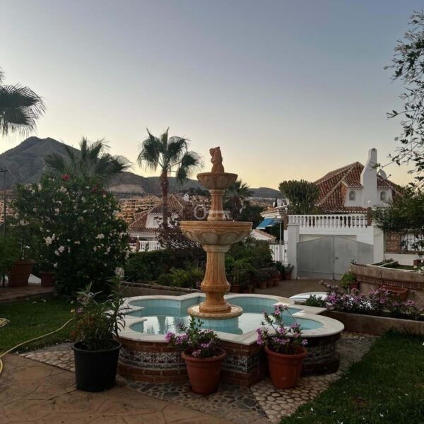 Otoczona zielenią i ozdobnymi donicami willa łączy w sobie prywatność, przestrzeń i mnóstwo naturalnego światła, co czyni ją idealną opcją zarówno jako miejsce stałego zamieszkania, jak i luksusowy dom wakacyjny w Benalmádena.