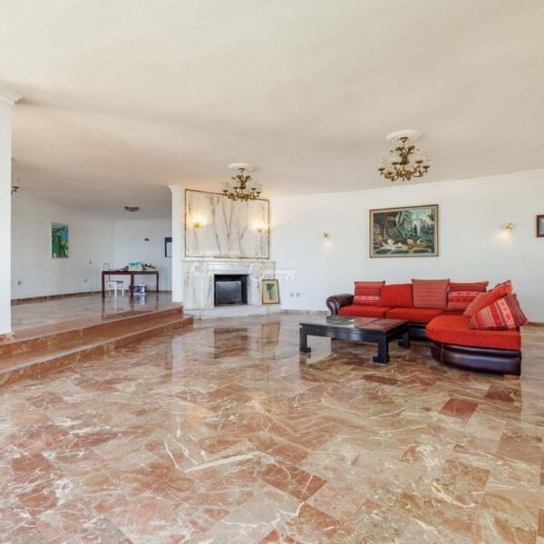 Po wejściu do wielkiego holu natychmiast witają Cię panoramiczne widoki na lśniące morze i majestatyczne góry otaczające tę ekskluzywną nieruchomość. Po lewej stronie znajdują się dwa rozległe salony, każdy z oszałamiającym marmurowym kominkiem, oferującym wyrafinowaną i zachęcającą atmosferę idealną zarówno do relaksu, jak i rozrywki. W domu znajdują się dwie ogromne kuchnie, idealne dla entuzjastów kulinarnych, wraz z dwoma przestronnymi sklepami i formalną jadalnią zaprojektowaną na wystawne spotkania.