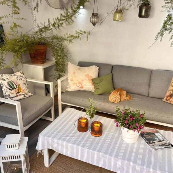 The house is equipped with a cozy fireplace for the cooler months, and a solar panel that ensures energy efficiency. The open kitchen, with a high dining table, creates a social and bright atmosphere, perfect for sharing special moments. Highlights include its beautiful west-facing patio, ideal for enjoying sunsets, and two terraces that provide additional spaces to relax.