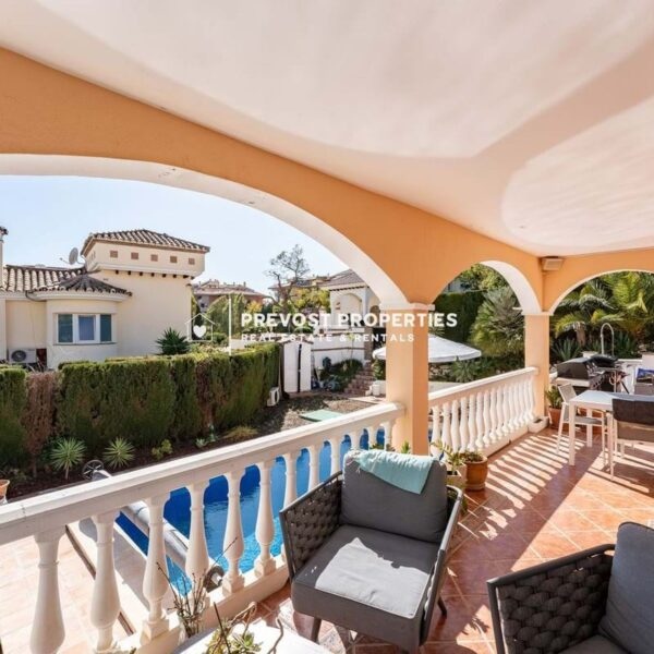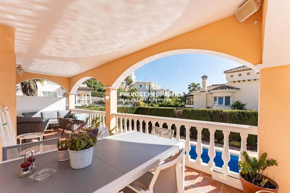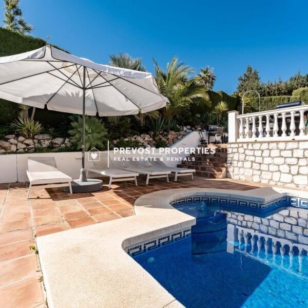 Villa with private heated pool, large terracces and beautiful garden. The property is situated on a dead-end street, surrounded by nature and with easy access to the beach and amenities.