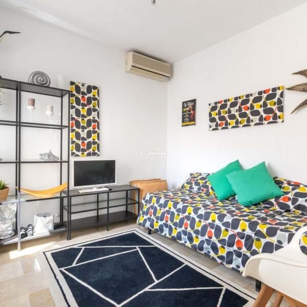 Additional features include air conditioning throughout, a large private garage, and access to a communal swimming pool. The property is sold fully furnished, making it ready to move into or rent out immediately.